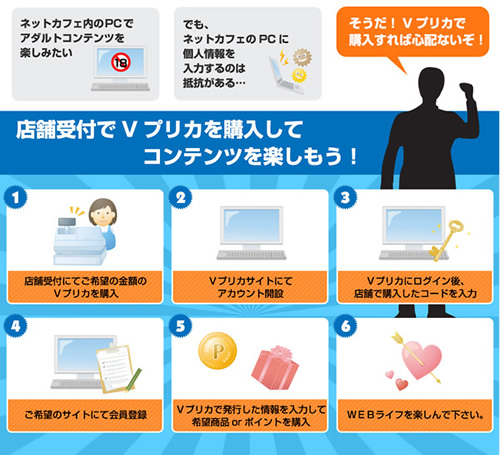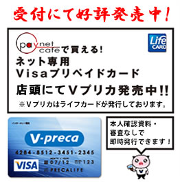 ネットカフェでらくらく現金決済できるPayNetCafeで好評販売中の「V-プリカ」が使える♪ 「安心♪・楽しい♪・うれしい♪」 サイト特集! ![]() ※各サイトをご利用の際は予め、利用規約やサービス内容をご確認の上ご利用ください。 ![]() ※Vプリカはネット専用のVisaプリペイドカードです。 V-プリカでのご利用であれば審査の必要不要! クレジットカードでは無いので自宅に利用明細も届かない!? |